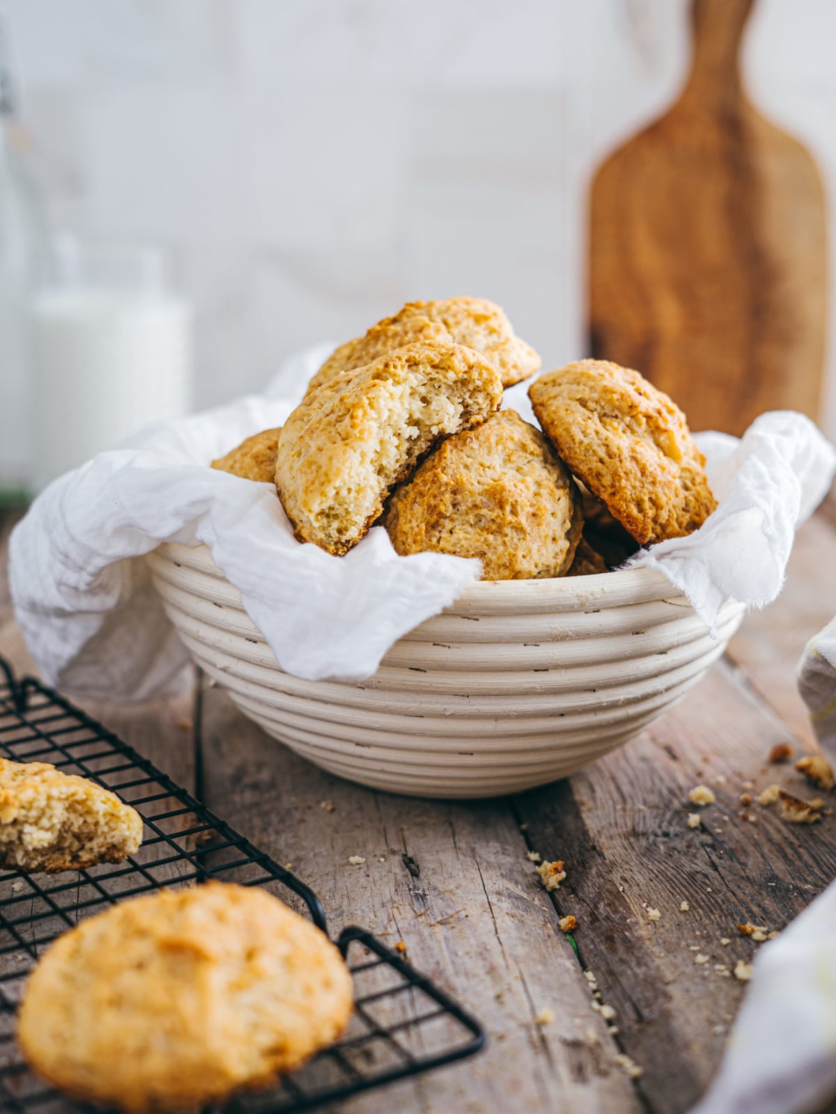 - Don’t Overmix – A lightly mixed, shaggy dough leads to the fluffiest biscuits.