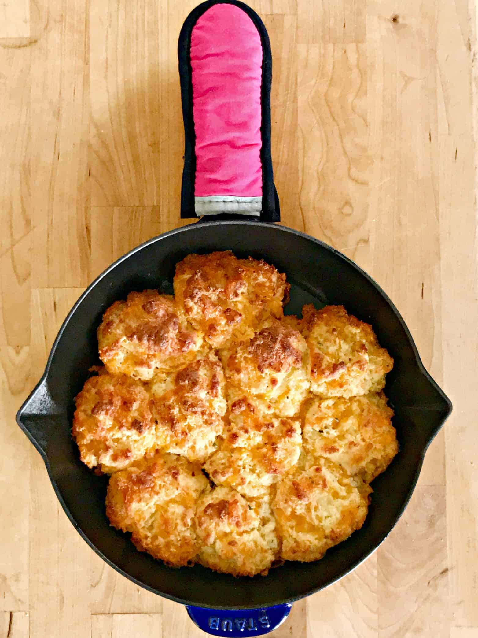 I didn’t try it in the cast iron pan because I’ve never made drop biscuits before and wanted to have a win my first go round. Also, not sure if the mozzarella and cream cheese was supposed to melt at all in 30 seconds but mine didn’t. So I did two spurts of 10 seconds (50 seconds in total) so that it began to melt so I could stir it.